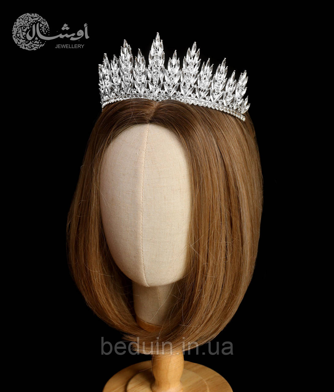 Висока святкова корона, діадема з каменів "Колоски" — срібляста Aushal Jewellery